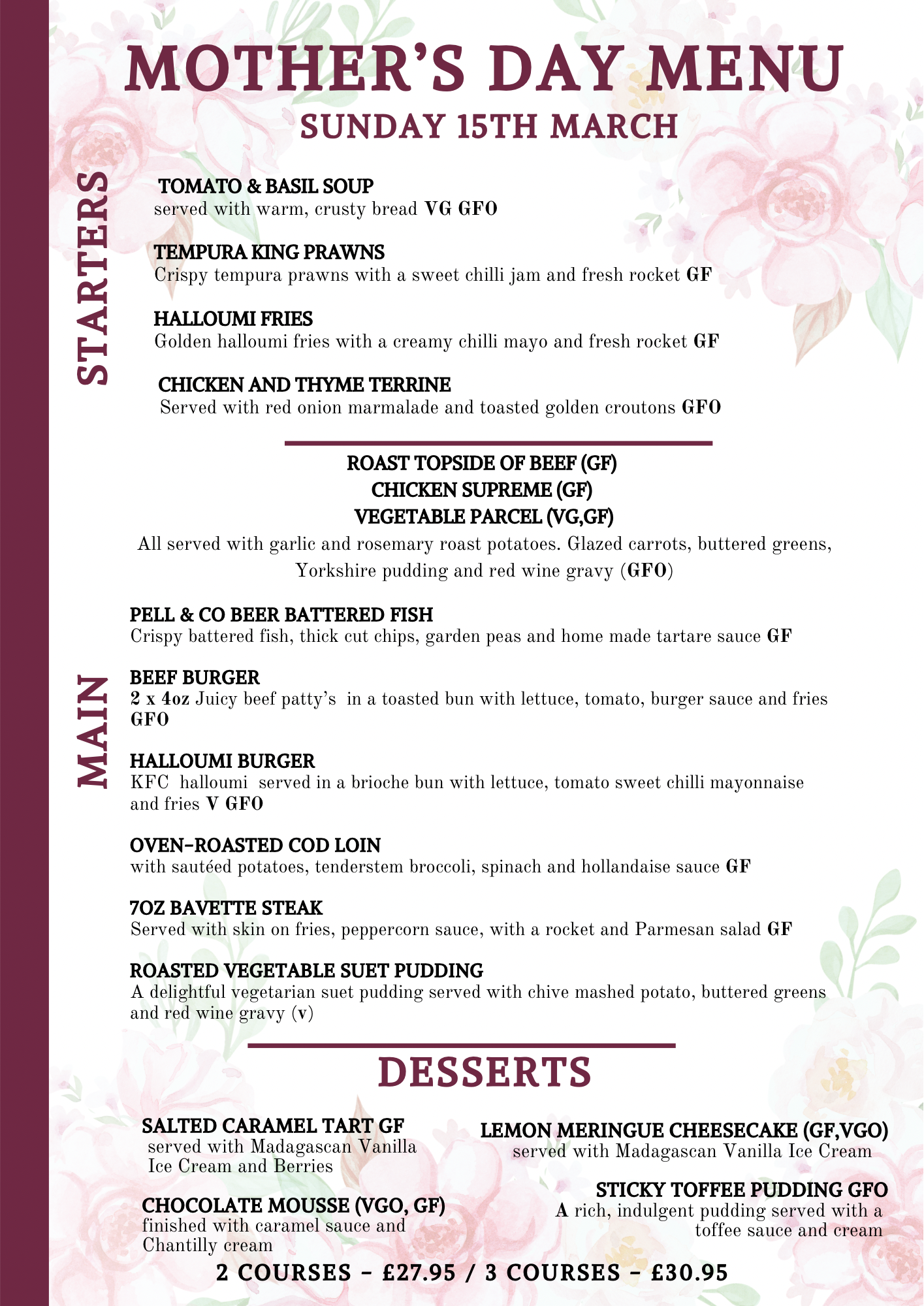 This Mother’s Day, let us help you honour the amazing mother figure in your life with our Mothers Day set menu, Choose from either a two or three course meal!